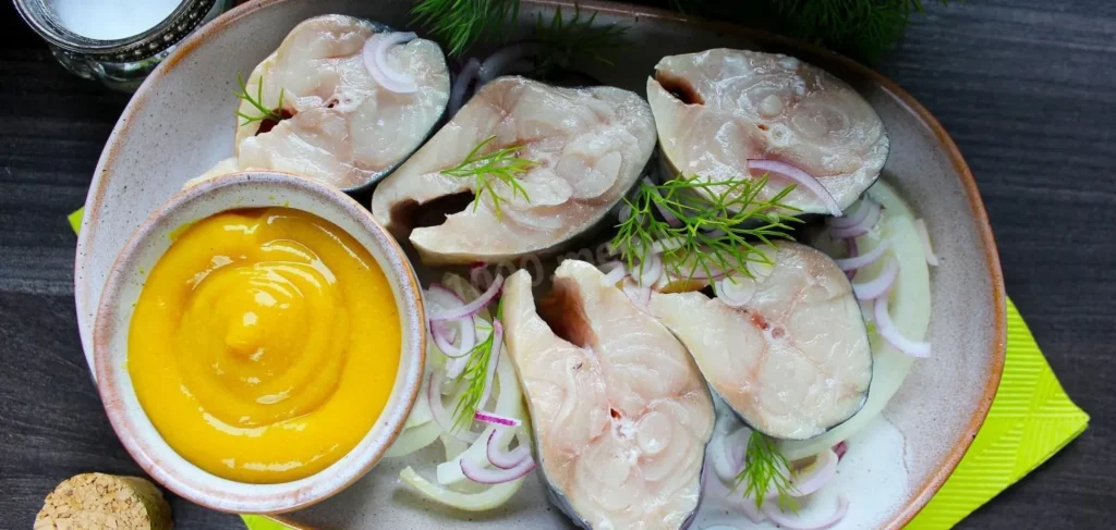 Ще один шикарний варіант маринаду – з використанням гірчиці в насінні. Незважаючи на те, що скумбрія сама по собі жирна, всі інгредієнти тільки покращують смак і не “обтяжують” страву.
