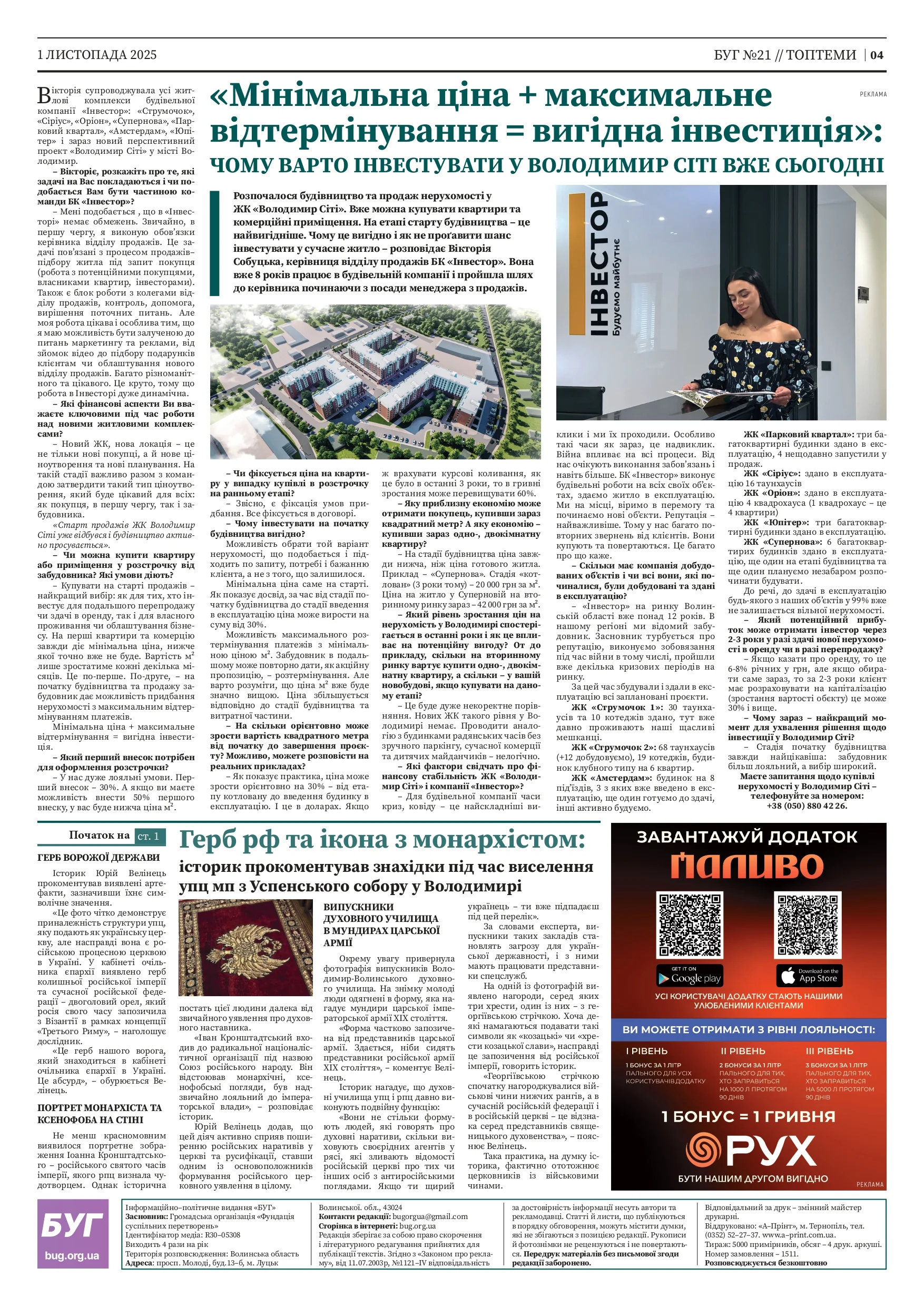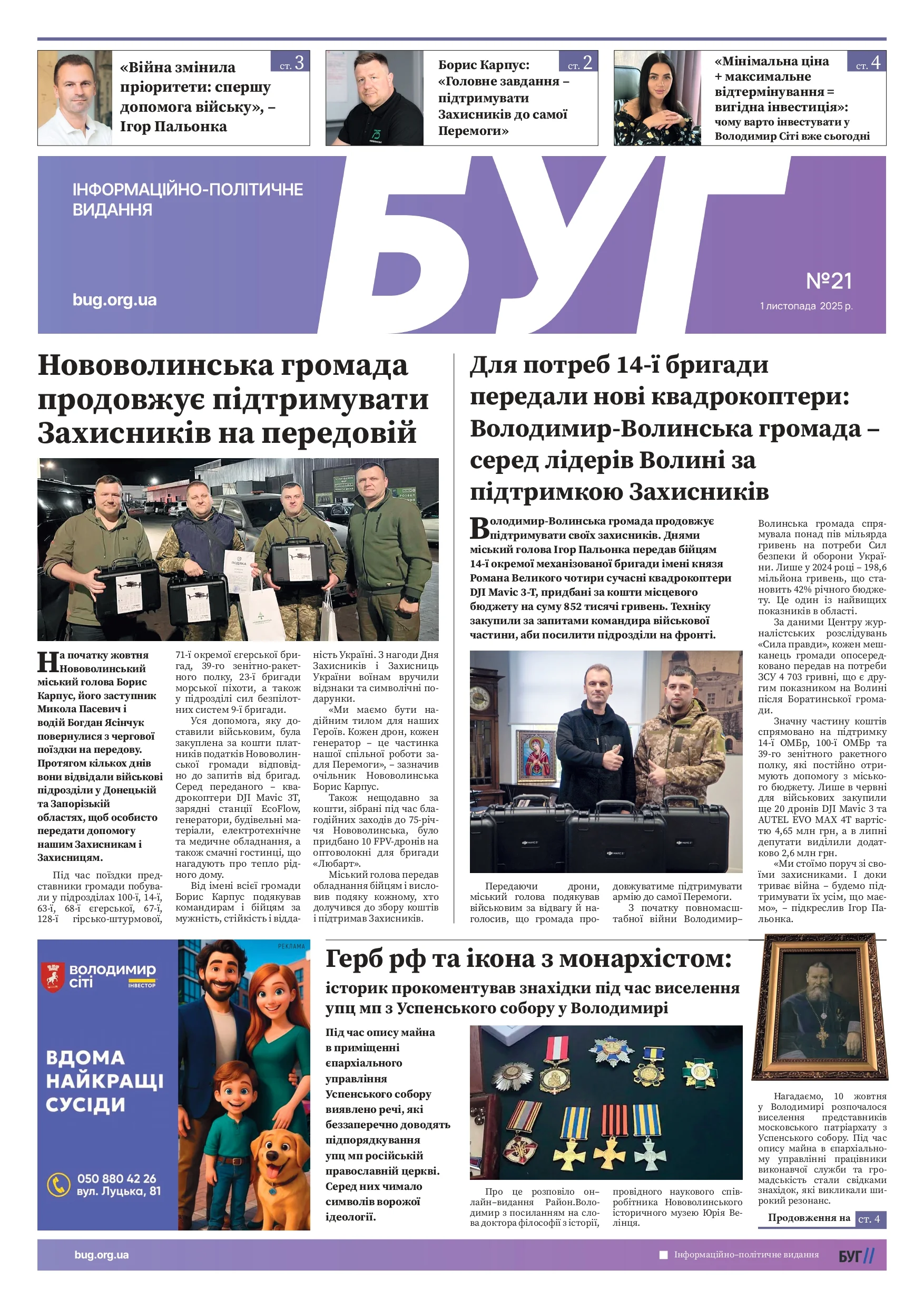 Вийшов свіжий 21-ий випуск газети «БУГ» від 1 листопада. Газета розповсюджується безкоштовно.