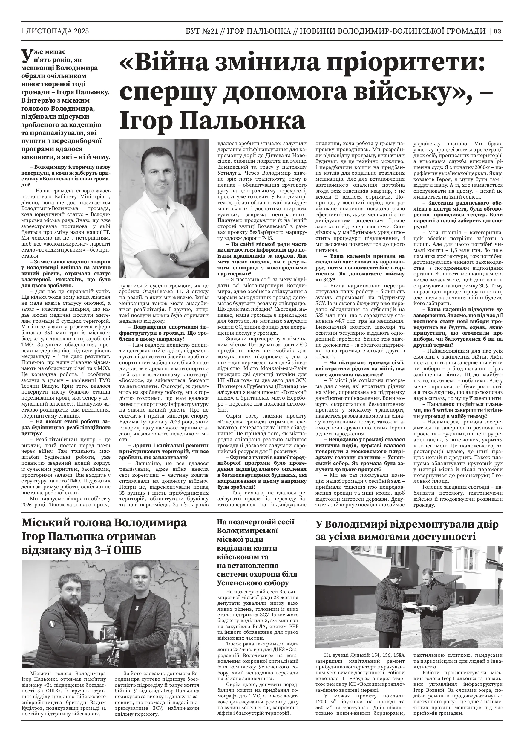 - П’ять років каденції: інтерв’ю з міськими головами Володимира та Нововолинська – Ігорем Пальонкою та Борисом Карпусом. Підсумки, здобутки та виклики.