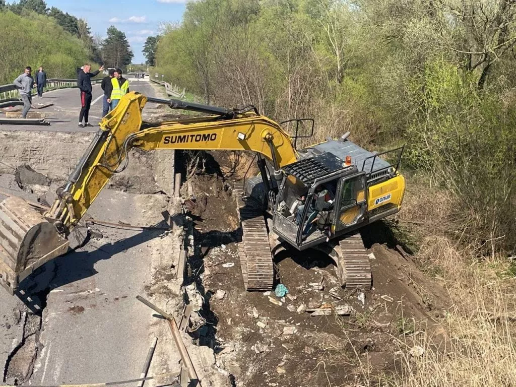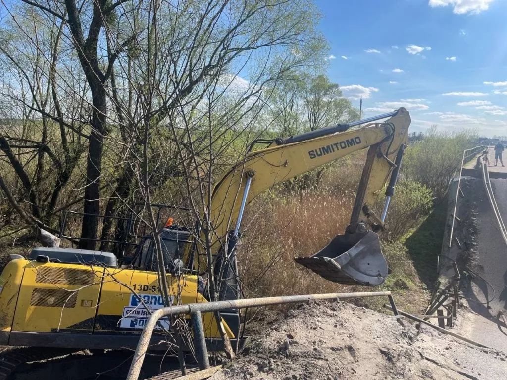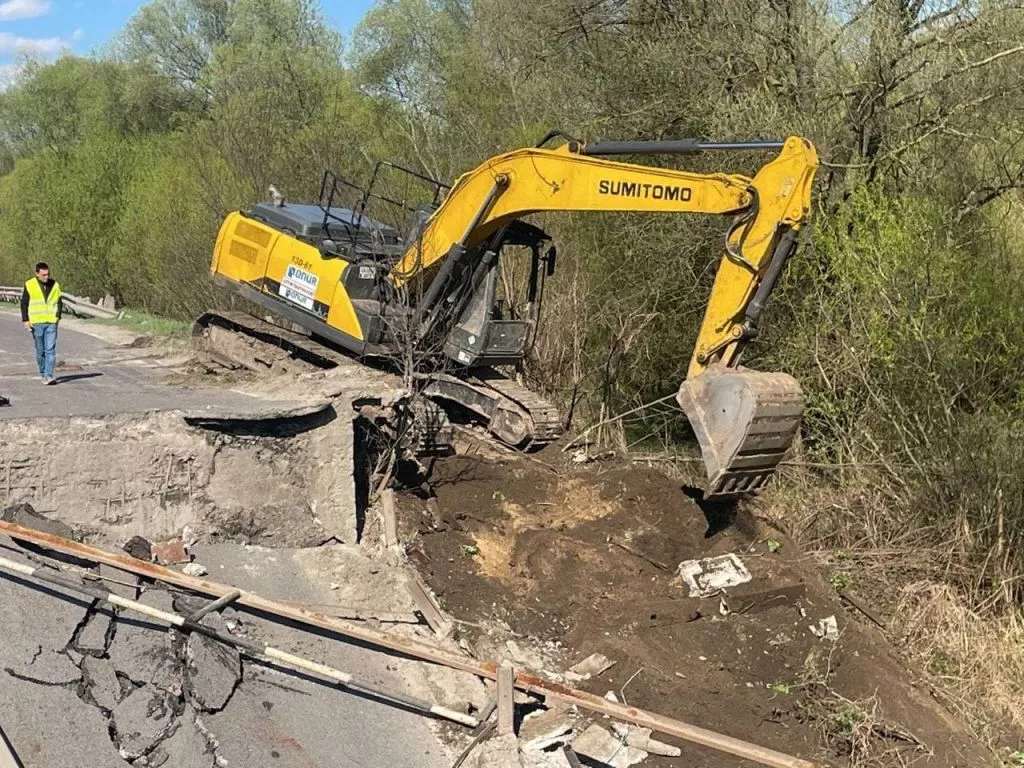 На автомобільній дорозі Львів-Радехів-Луцьк, де 3-го травня трапився обвал мосту, демонтовують елементи зруйнованої споруди через річку Західний Буг.