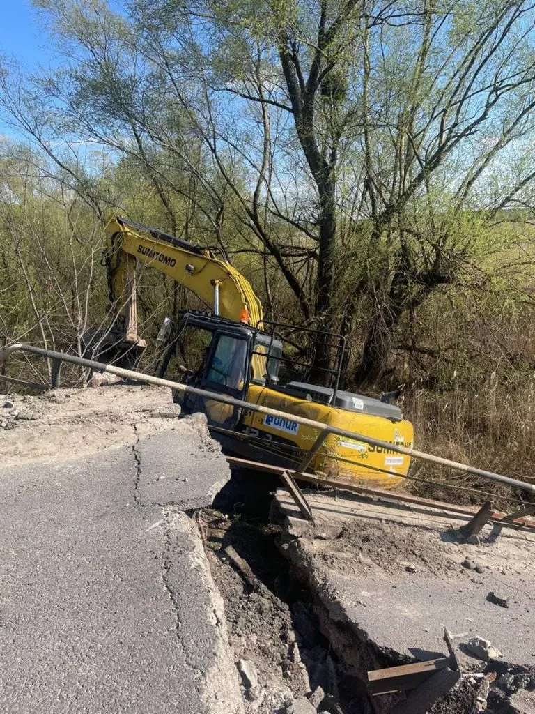 Для об’їзду зруйнованої переправи встановили відповідні дорожні знаки, а робітники вже розпочали демонтаж зруйнованих елементів мостового переходу через річку Західний Буг та проводять підготовчі роботи для проведення аварійно-відновлювальних робіт.
