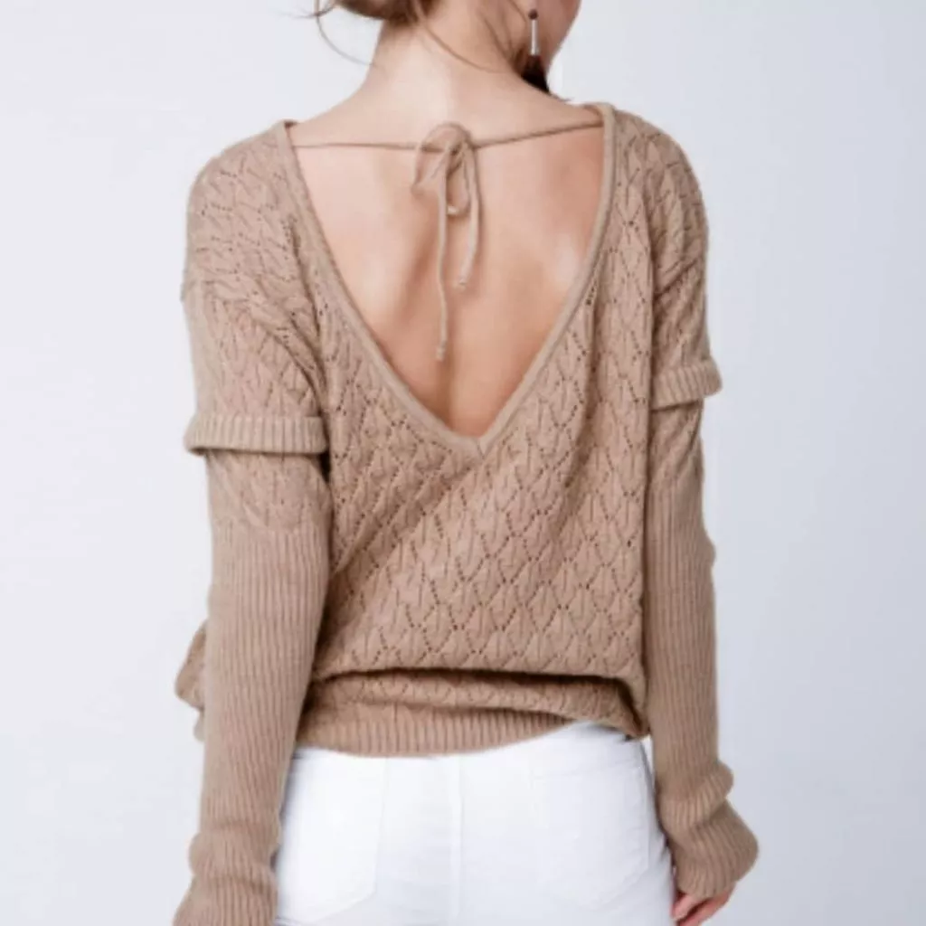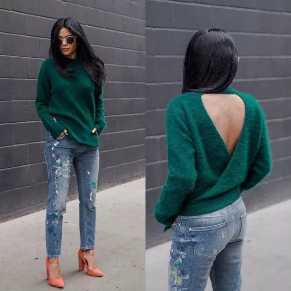 Стильним також буде джемпер з ажурною в’язкою і вирізом на спині. Одягайте під нього однотонні брюки і доповніть лук красивою біжутерією. Такий джемпер підійде для неформальних зустрічей і побачень, а ваш образ точно буде привертати увагу оточуючих.