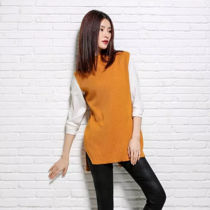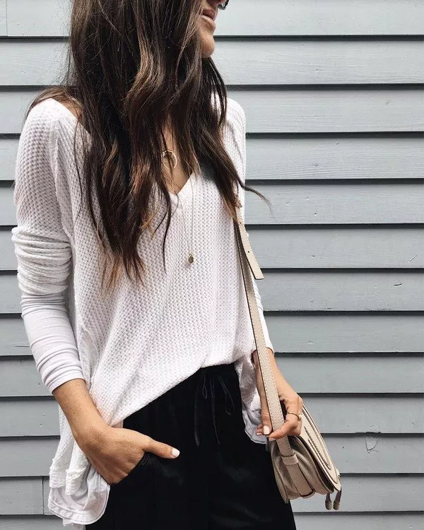 Найпростіший – купити однотонний тонкий джемпер на весну. Це можуть бути як базові кольори (чорний, білий, бежевий, сірий), так і яскраві – жовтий, рожевий, блакитний. Носити такий джемпер можна як із класичним брючним костюмом, так і з джинсами і грубими черевиками.