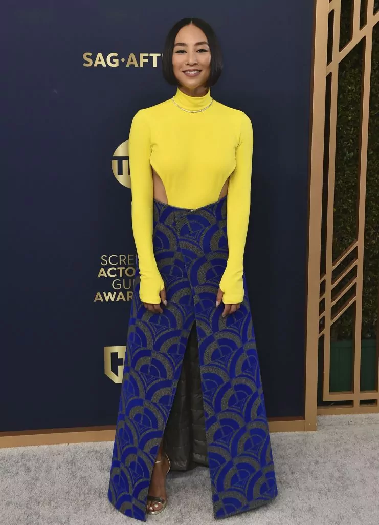 Корейсько-американська акторка прийшла на церемонію нагородження премії Гільдії кіноакторів у вбранні синьо-жовтого кольору, яке символізувало прапор України.