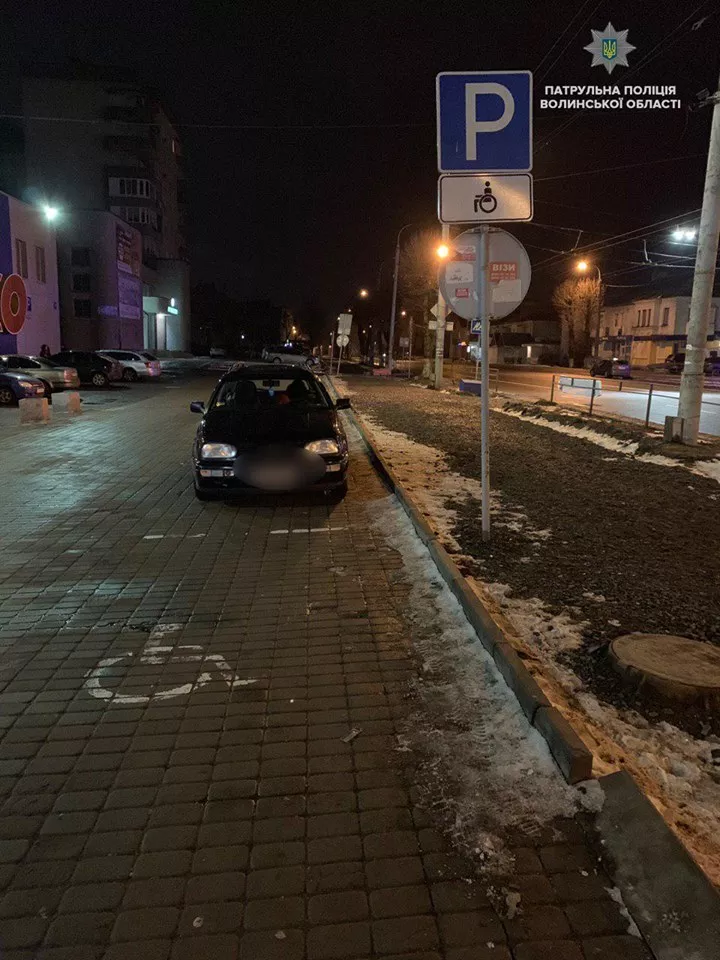 Другий припаркувався на місці, призначеному для осіб з інвалідністю. При розмові в нього виявили ознаки сп’яніння, оформили необхідний протокол.
