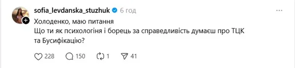 Євген зазначив, що Софія заперечує той факт, що росіяни свідомо вбивають цивільних українців та військових, знімає відповідальність з росії за воєнні злочини й нормалізує насильство.