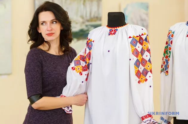 Вікторія Співак, яка представила на виставці репліку сорочки із села Синевир, Міжгірського району, каже, що обрала її для роботи через поєднання кольорів.