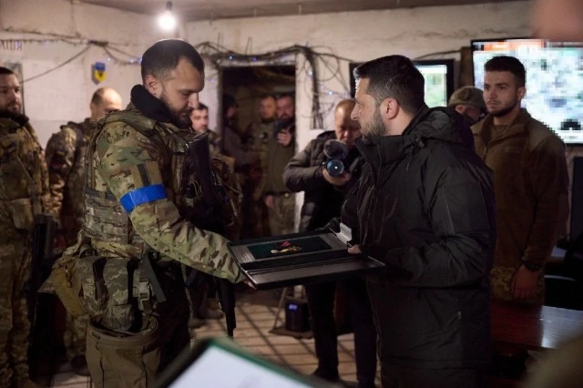 «Маю честь сьогодні з нашою командою бути тут, у вас в Авдіївці, подякувати вам за службу й нагородити. Ви – сильні люди. Завдяки вам у нас є Україна, наша земля, наші рідні та близькі. Хочу привітати вас із Різдвом, з Новим роком, подякувати від всього народу України за цей рік, який ви вистояли. І вся країна вистояла завдяки вам і завдяки таким, як ви», – зауважив Президент.