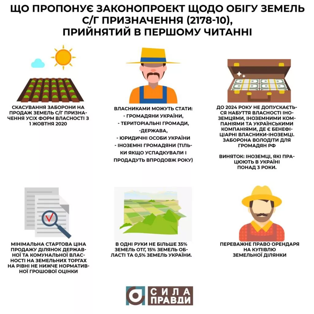 Однак, 13 листопада Верховна Рада підтримала законопроєкт щодо обігу земель сільськогосподарського призначення у першому читанні і зробила крок, який попередники не могли зробити 19 років. Хоча до другого читання чимало може змінитися (включно із референдумом щодо ролі іноземців), журналісти «Сили правди» проаналізували, як його базові положення можуть вплинути на власників паїв, аграріїв та покупців продуктів.