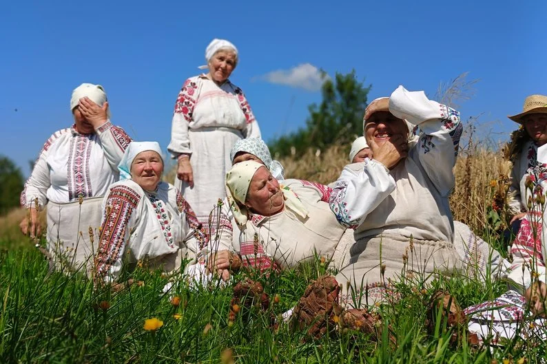 Вигляд під час польових робіт обов’язково треба мати акуратний, каже учасниця ансамблю Валентина Нестерук. Бо жнива були масовим дійством і якщо прийти у зім’ятому чи не ошатному одязі, то можна було зажити в селі репутації не охайної господині.