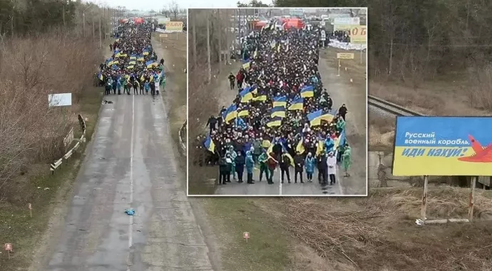 Жителі міста Енергодар у Запорізькій області вийшли на зустріч окупантам із прапорами України та готовністю не пустити ворога в місто.