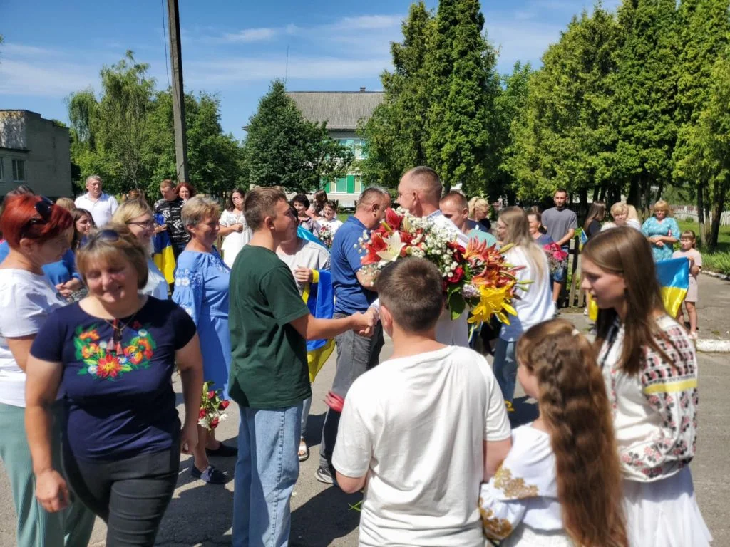 Захисникам подякували за незламність представники місцевої влади, духовенство, освітяни. Коли ж урочиста частина заходу завершилась, рідні, друзі, знайомі з усіх сторін обступили Валерія та Сергія. Було дуже багато обіймів, рукостискань та пам’ятних фотознімків. Присутні просто втопили винуватців урочистості у квітах.