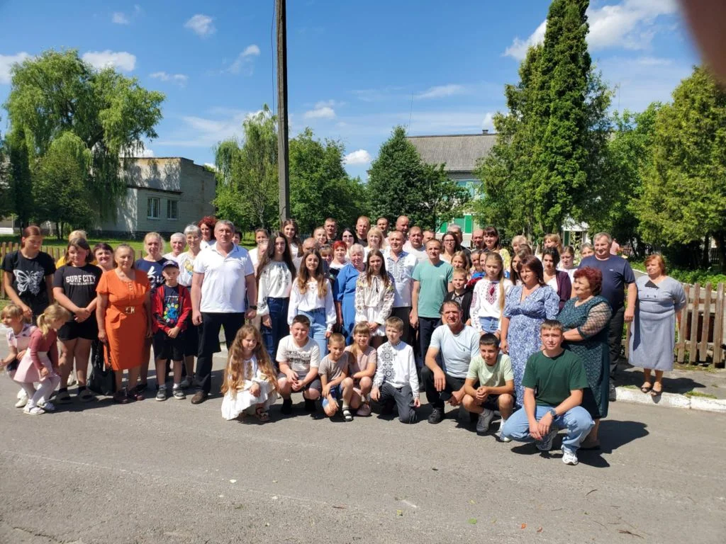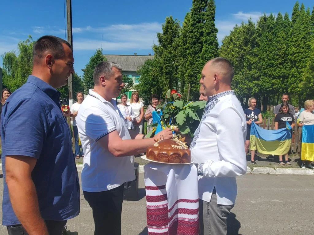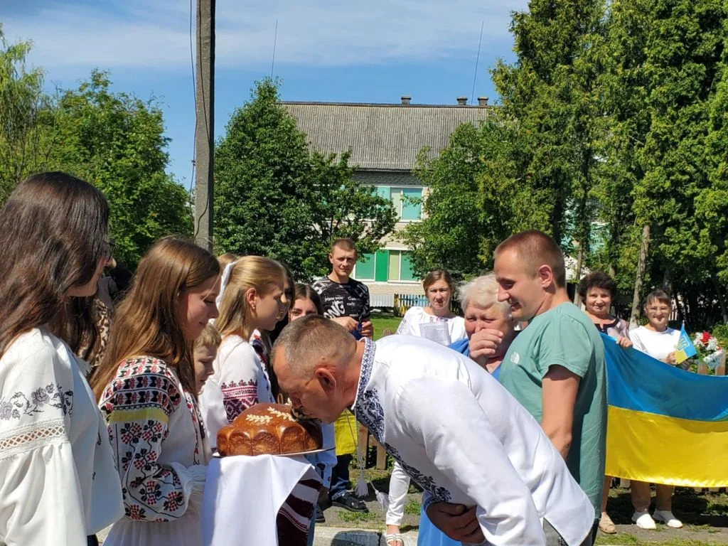 Десятки людей зібралися в центрі села, поблизу місцевої школи. Вони стояли вздовж дороги, тримаючи національні прапори з бригадною символікою та оберемки барвистих квітів. У повітрі застигла радість очікування. Коли ж нарешті прибув автомобіль з Героями, то оплески не вщухали ще дуже довго. Валерія Кодню та Сергія Колошву односельці зустрічали вигуками «Вітаємо вдома!». Таке ж привітання учасники заходу склали з літер, які тримали у себе над головами.