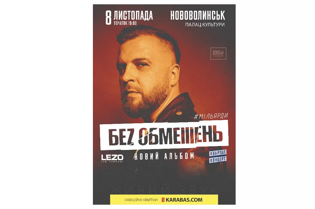 8-го листопада у Нововолинську виступить гурт «Без Обмежень» з новим альбомом «Мільярди». Також хлопці виконають свої хіти. Початок концерту 8-го листопада о 19:00 в міському Палаці культури. Придбати квитку можна тут. «Ми створювали «Мільярди» із надзвичайним настроєм і натхненням. У ньому присутні як романтика і ...