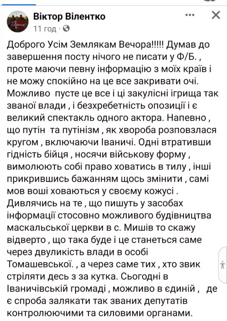 Джерелом для публікації став пост на фейсбук-сторінці воїна 14-ої бригади, колишнього очільника Іваничівської райради, а нині депутата Володимирської райради Віктора Вілентка