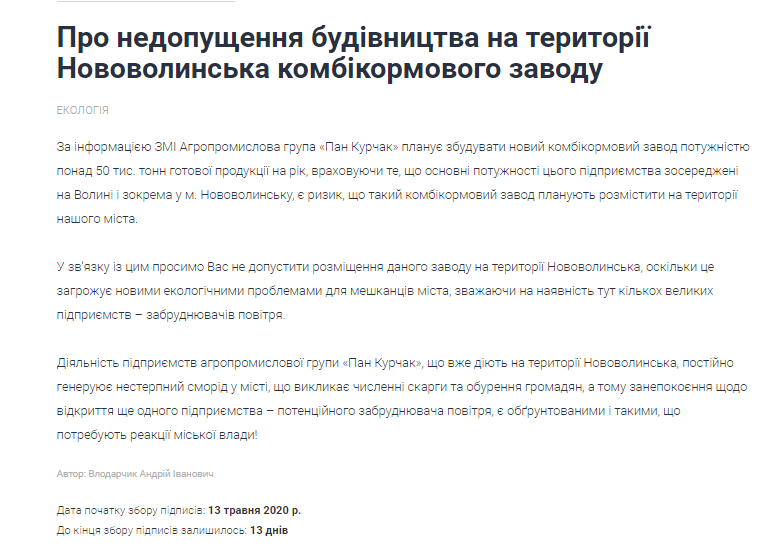 Проти ще одного смердючого підприємства «Пан Курчак»: нововолинці, підпишіть петицію