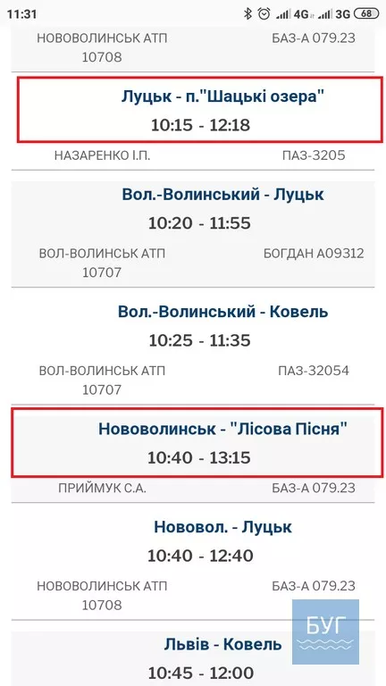 Після того як півтори години гуляла автостанцією, приїздить автобус з необхідною табличкою, але чомусь їде на зовсім іншу платформу. Хтось гукнув, що це він на Шацьк… І дякуючи цій людині, я не пропустила автобус. Звідки ж мені знати, що автобуси в напрямку Шацька стають на Львівську платформу… Тьху я блондинка…. Не здогадалася, що автобус не поміститься на призначене йому місце, а тому переїхав на іншу платформу.