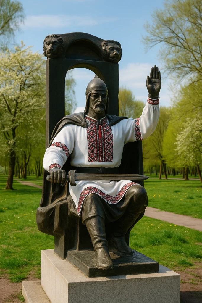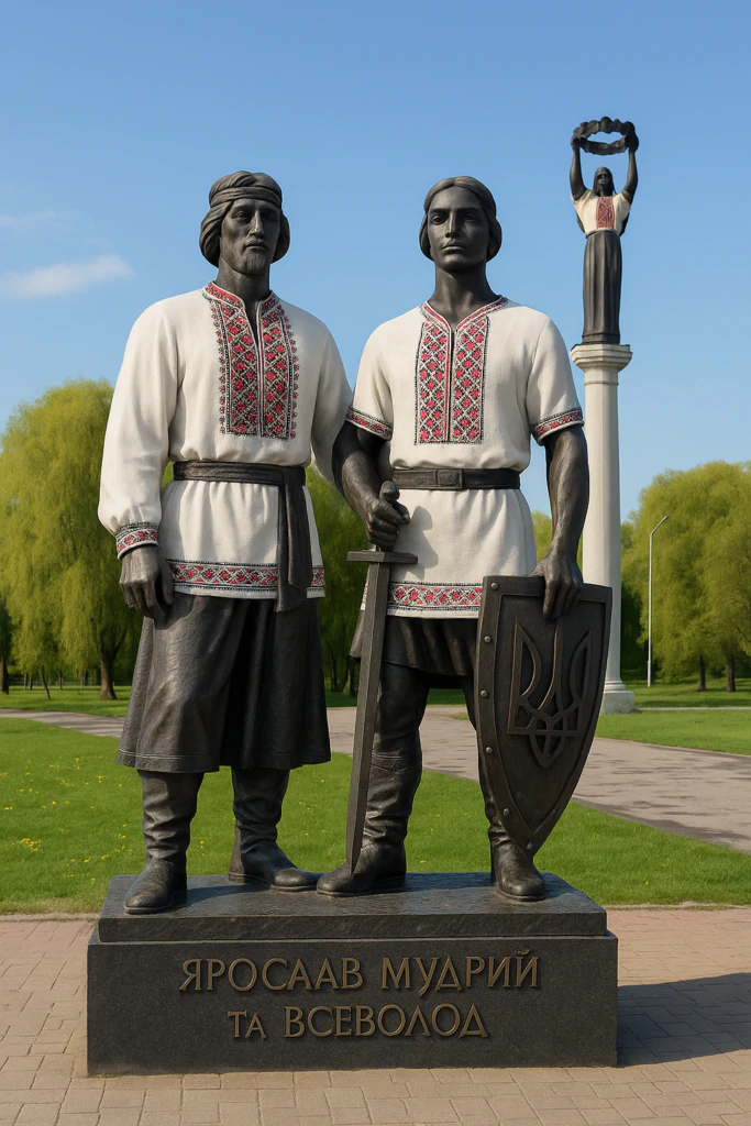 Ми вирішили уявити, як би виглядало місто, якби до святкування долучилися й вони — наші князі. На фото, згенерованому за допомогою штучного інтелекту, — пам’ятники видатним історичним постатям, які стоять у Володимирі. Ми «одягнули» їх у вишиванки, бо впевнені: ця традиція гідна кожного покоління.