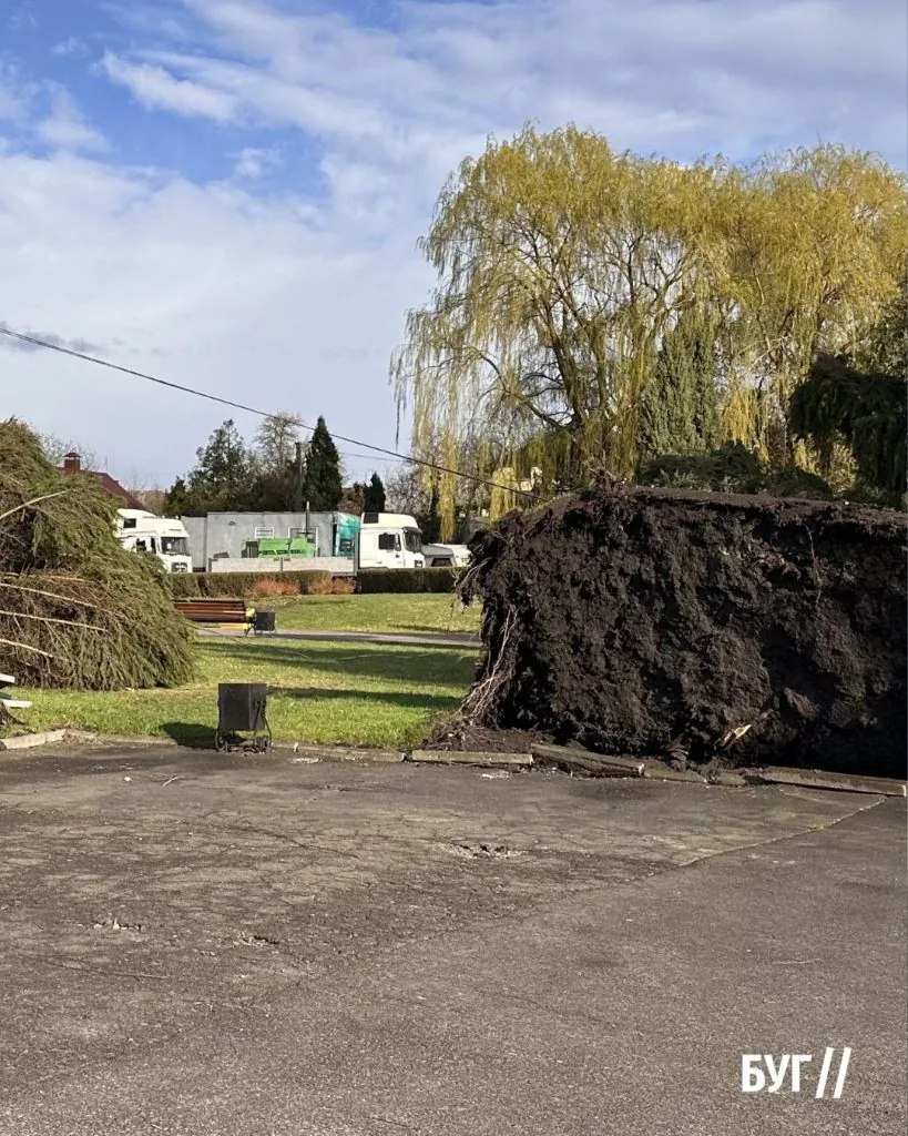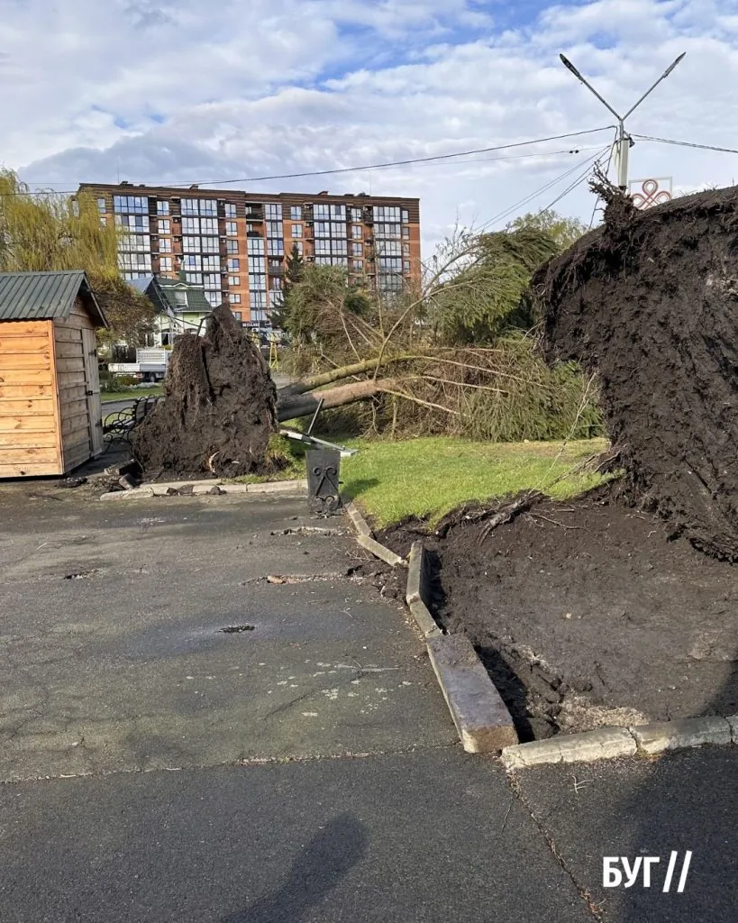 Пориви вітру були досить потужними — дерева не витримали і впали просто на території парку. На щастя, інформації про постраждалих немає.