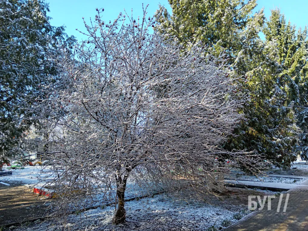 Похолодання принесло в місто справжню зимову погоду. З ночі йшов сніг, температура опустилася нижче нуля, а вже зранку містяни побачили замерзлі дороги, засніжені дерева та кущі.