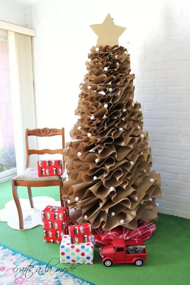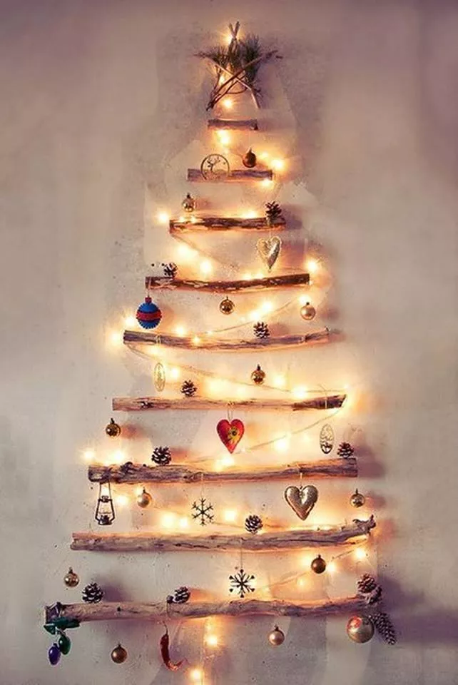 “Ось приклади для натхнення. Ялинки можна робити з сухих гілок, дерев’яних брусків, паперу, викладати силует з гірлянд, чи новорічних кульок. І виглядає це не гірше традиційної ялинки!”, – йдеться в повідомленні.
