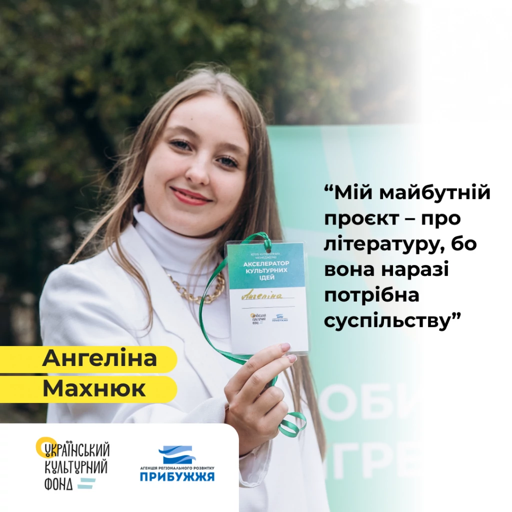 Участь в Акселераторі культурних ідей від Клубу культурних менеджерів взала тому, що це об’єднання таких людей, які мають одну ціль. І, власне, почула стосовно Клубу від своїх колег «по культурі», які сказали: я подаюсь сюди, можливо, тобі це буде цікаво. Мені стало цікаво і я вирішила спробувати. Для мене написання
