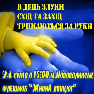 Нововолинський осередок "Патріот України" спільно з Нововолинським осередком Української Республіканської Партії у суботу 24 січня 2015 року о 15 :00 проведе патріотичний флешмоб в честь дня Соборності України. Мета флешмобу з'єднати живим ланцюгом дві сторони Нововолинського майдану Незалежності,що символізуватиме ...