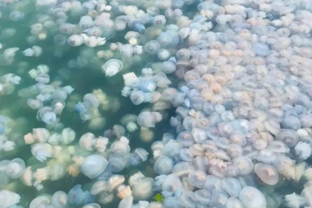 У порту Одеси в Чорному морі сфотографували величезну кількість медуз. У порту кількість медуз зашкалює, повідомив Telegram-канал "Х*евая Одесса" і показав знімки, розповідає УНІАН. На фото видно, що медузи в Одесі плавали на різній глибині, а у деяких місцях щільно покривали поверхню моря. Інтернет-користувачі ...