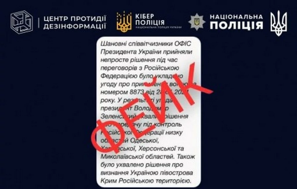 На електронні скриньки українців почали надходити повідомлення нібито від Офісу Президента України. У них йдеться про «припинення вогню з рф» та «передання країні-агресору частини територій». Про це інформує Центр протидії дезінформації. Насправді поширювані повідомлення – фейк російської ІПсО, яка має на меті ...