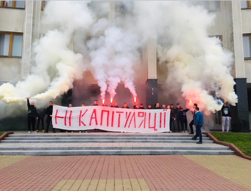 25-го жовтня під будівлею Волинської обласної ради активісти, які виступали проти «формули Штайнмаєра" підпалили фаєри. Про це інформує ІА Конкурент. Акцію організували представники «Національного корпусу». У руках вони тримають плакат із написом «Ні капітуляції». До акції «Ні капітуляції» 25-го жовтня долучились ...