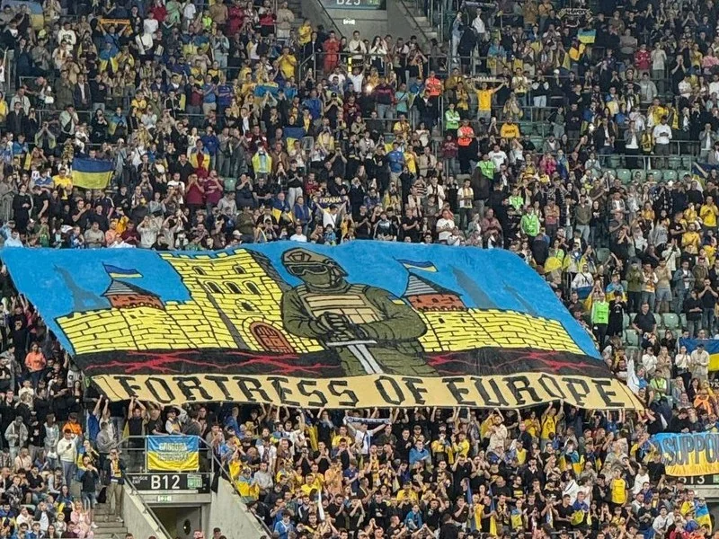 Під час поєдинку збірної України з Францією трибуни українських уболівальників вкотре стали місцем справжнього символізму. Фанати розгорнули масштабний банер із зображенням українського воїна та фортеці, яка уособлює незламність нашої держави. Про це повідомляє "Чемпіон". На зображенні багато глядачів впізнали в'їзну ...