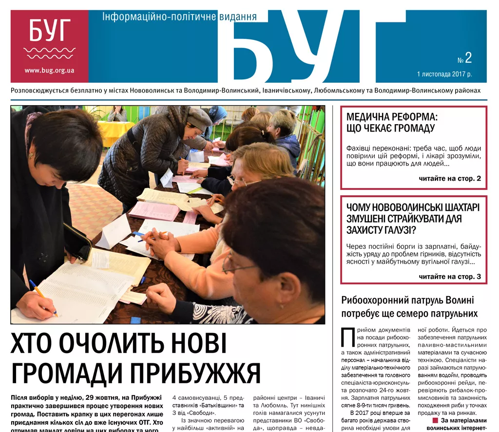 З листопада на Прибужжі розпочинається розповсюдження нового номеру безплатної газети «БУГ». Тижневик «БУГ» - інформаційно-політичне видання, яке містить актуальну, гостру та об'єктивну інформацію. На сторінках друкованого видання будуть міститися основні новини тижня, актуальні інтерв'ю та проблематика регіону у ...