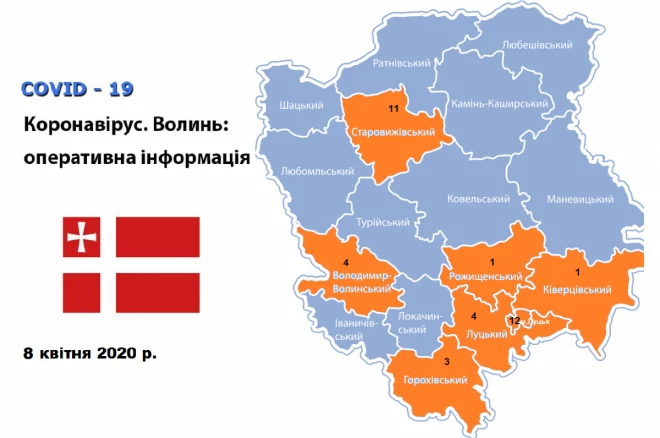 Вранці 7-го квітня на Волині зареєстрували 34 випадки COVID-19, в тому числі два летальних. Серед них COVID-19 виявили у 20 медичних працівників, трьох дітей та ін. Про це інформує Волинський обласний лабораторний центр.Повідомляють, що серед захворілих – троє дітей віком до 7 років (Луцький район, смт. Стара Вижівка,