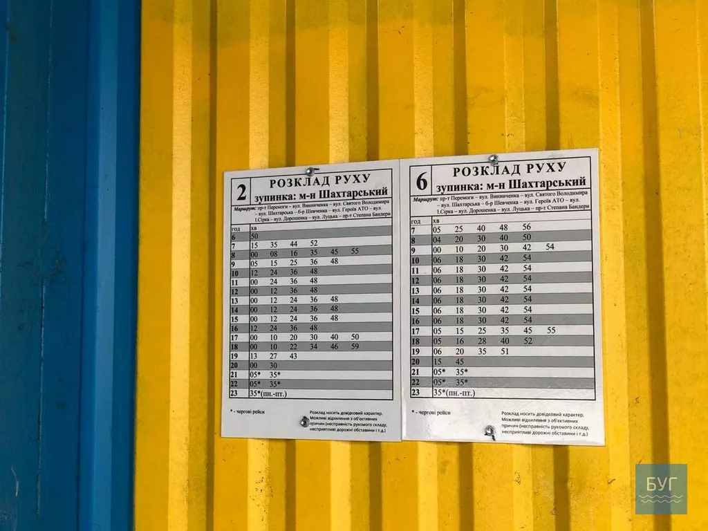 Зупинки в Нововолинську обладнали табличками з розкладом руху. Маршрутки №2 та №6 курсують з 6-ї ранку до 20:00, з встановленим інтервалом. Після 8-ї вечора - чергові рейси. На кожній зупинці вказаний час відправлення. Зазначається, що розклад носить довідковий характер, можливі відхилення з об'єктивних причин. ...