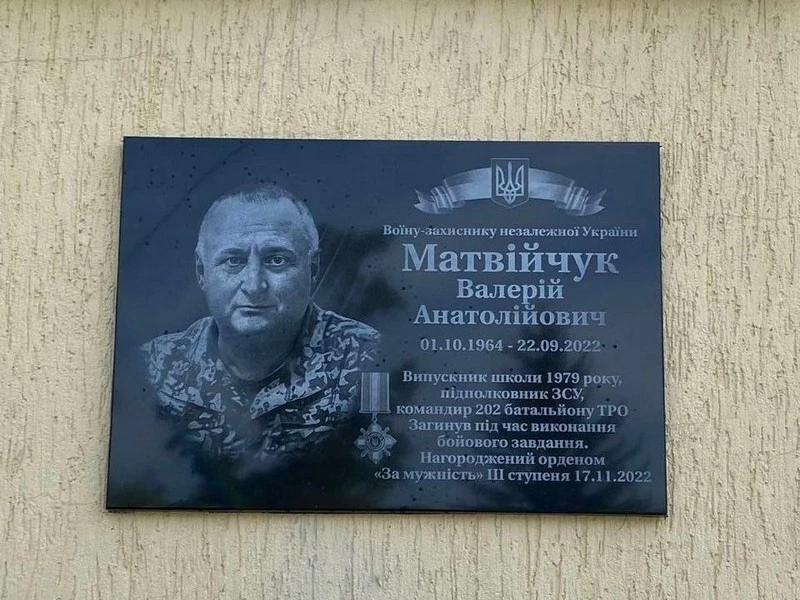 30-го вересня на фасаді ліцею № 1 у Володимирі з’явилась ще одна пам’ятна дошка, уже четверта. На ній – світлина випускника школи 1979-го року підполковника Валерія Матвійчука, який загинув, захищаючи Україну. Про це повідомляють на сайті міста. Зініціювали встановлення дошки однокласники Героя Володимир Кравчук та ...