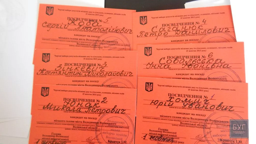 Сьогодні, 1 жовтня, на засіданні ТВК прийняли рішення про реєстрацію кандидатів у мери. Загалом шестеро осіб виявили бажання очолити Володимир-Волинський, це - Микола Юнак, Юрій Хомик, Констянтин Зінкевич, Петро Саганюк, Сергій Коба та Інна Совальська. Короткі відомості про кандидатів: Микола Юнак, громадянин України,
