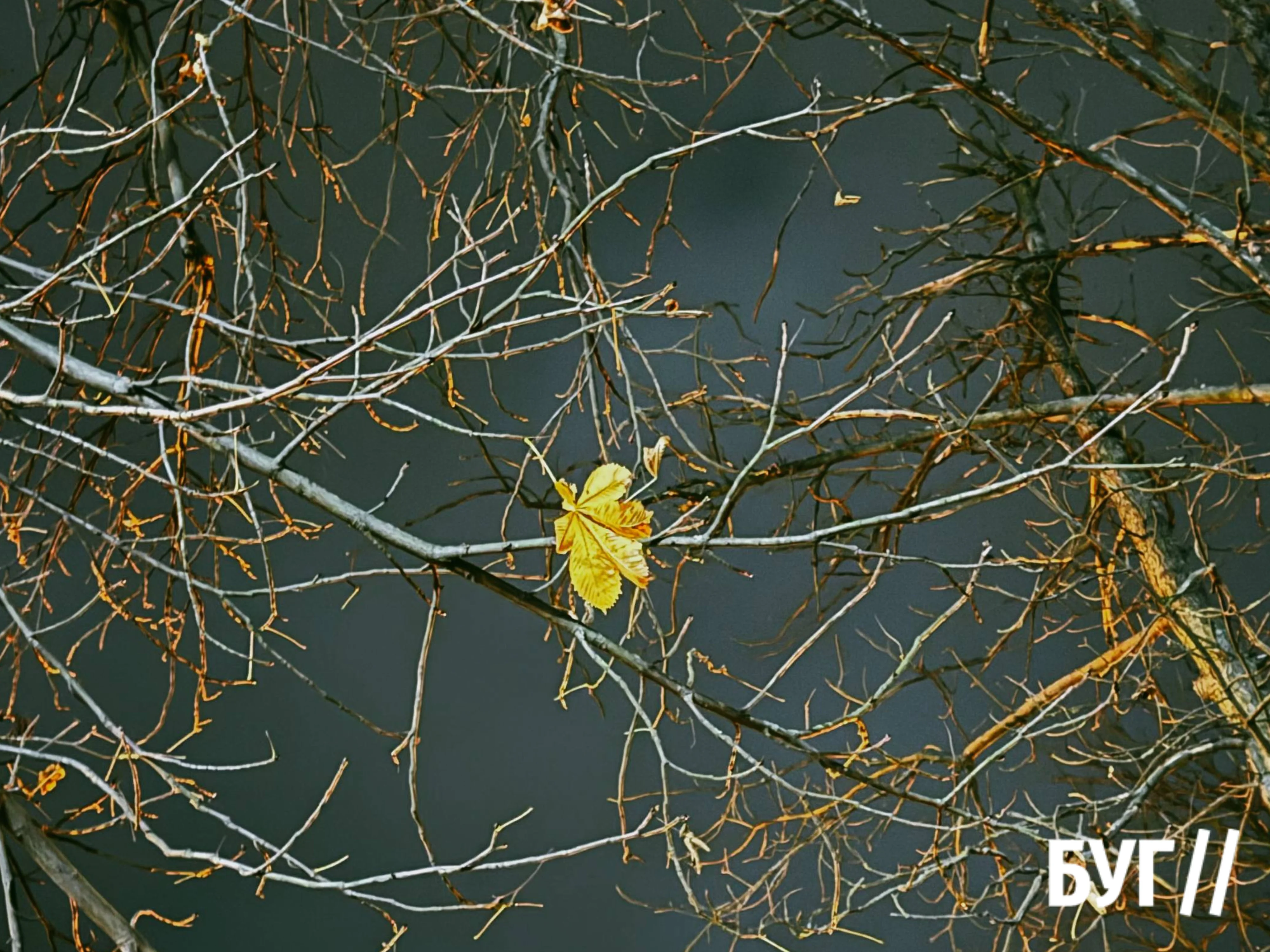Останній листок на гілці тримається за осінь так, ніби не хоче відпускати. Серед холодного вечірнього неба він світиться жовтим полум’ям — тихим, але впертим, маленьким символ тепла у прохолодному вечорі. Осінь повільно відходить, лишаючи нам такі мить, де природа ніби затримує подих перед зміною пори року. І поки