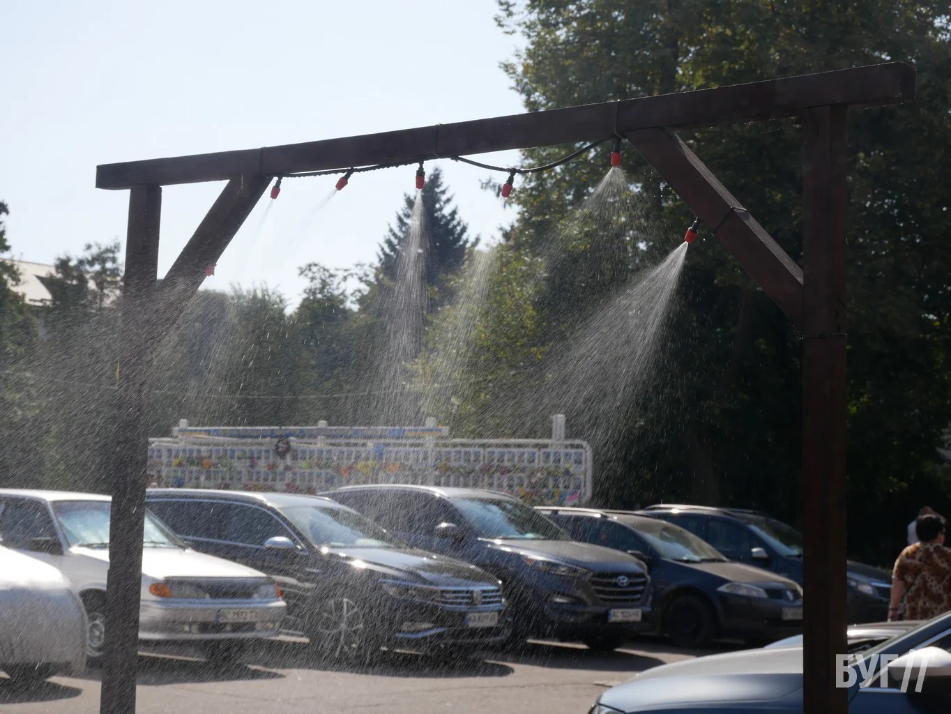 Хоча на календарі вже осінь, погода у Володимирі 2-го вересня зовсім не осіння — спека нагадує справжнє літо. Саме тому охолоджувальна рамка, яка встановлена на центральній площі міста, знову стала у пригоді для містян. Металеву конструкцію з розпилювачами води облаштували аби у спекотні дні мешканці й гості міста ...