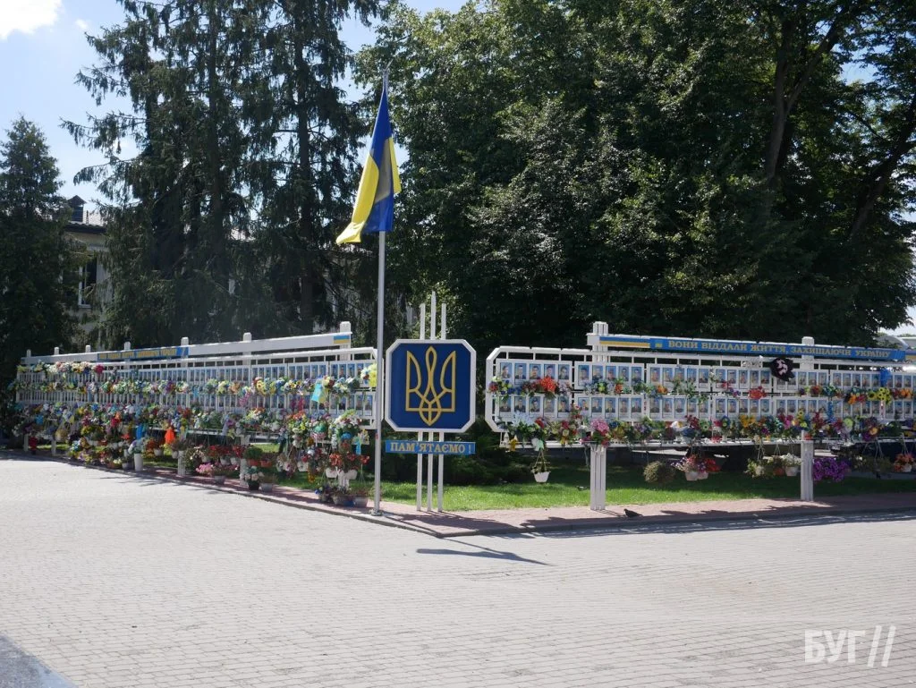 У центрі Володимира, на площі Героїв, розміщено стенд із фотографіями полеглих військових. Це місце, де містяни щодня вшановують пам’ять захисників, приносять квіти, лампадки та дитячі малюнки. На стенді — світлини тих, хто віддав життя за Україну. Кожен — чиясь дитина, батько, чоловік, побратим, друг. Воїни, які