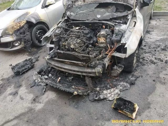 Пожежа сталася у ніч на 12 квітня на проспекті Молоді у дворі будинків 9-7, що у Луцьку. Про це Інформаційному агентству Волинські Новини повідомили місцеві жителі. Зокрема, в автомобіля «Шкода Октавіа» повністю згорів моторний відсік. У іншого авто Рено Меган, що стояв поряд, під час пожежі пошкоджено фару, крило та