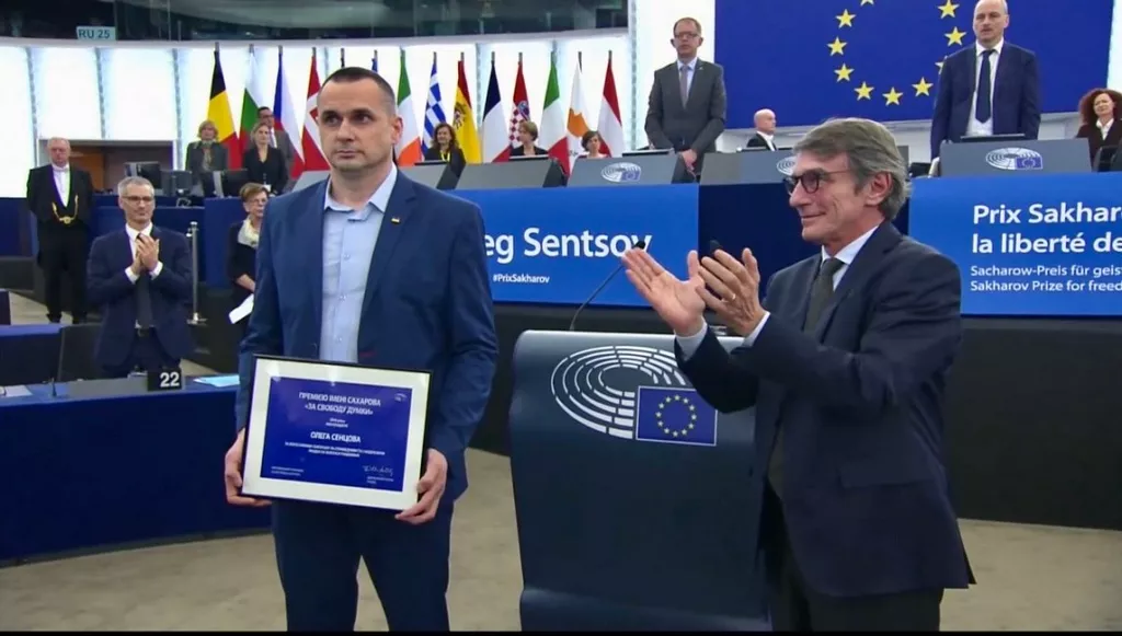 26-го листопада, під час пленарного засідання законодавчого органу Євросоюзу у Страсбурзі, колишній політичний в'язень Кремля, український режисер Олег Сенцов отримав премію Європарламенту імені Андрія Сахарова «За свободу думки», присуджену йому торік. Про це повідомляє Укрінформ. "Я вітаю українського режисера,