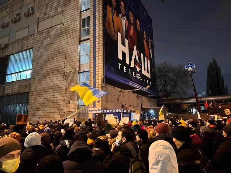 Увечері 2-го лютого у Києві біля будівлі проросійського телеканалу НАШ відбулася акція протесту. Учасники акції звинуватили канал у співпраці з Росією та вимагали його закриття. За інформацією Суспільного, участь в акції протесту взяли близько сотні людей. Мітингувальники вимагали закриття ...