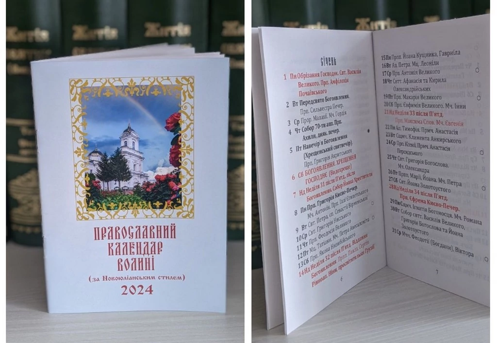 У Волинській єпархії ПЦУ випустили церковний календар на 2024 рік за новоюліанським стилем. Про це повідомили на сторінці Волинської єпархії ПЦУ. Видавничий відділ єпархії «Ключі» випустив настінний та книжковий церковні календарі на наступний рік за новоюліанським стилем. "Придбати календарі, у яких подано ...