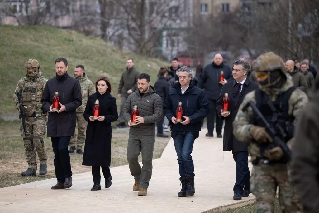 Президент Володимир Зеленський 31-го березня прибув до Бучі разом з лідерами Словаччини, Хорватії, Словенії та Молдови, щоб вшанувати пам’ять загиблих під час російської окупації. Події транслює Офіс президента, пише Європейська правда. Зеленський прибув до Бучі у річницю звільнення з главою уряду ...