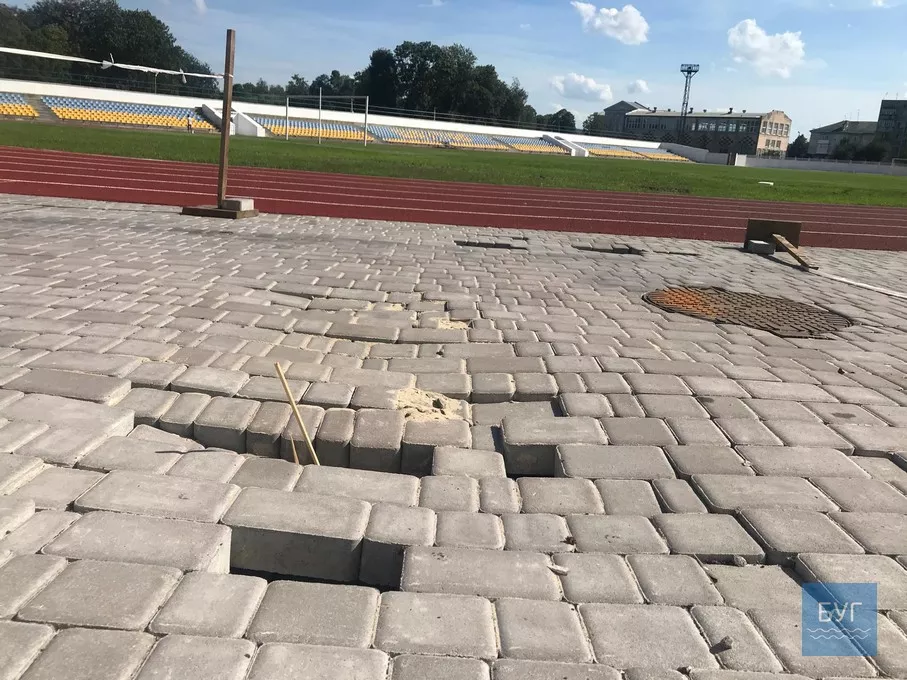 На днях на стадіоні «Олімп» у Володимирі розпочалися роботи зі знімання асфальтного покриття на бігових доріжках. Виявилося, що під доріжками проходить частина мережі водогону, а це може затримати роботи. Недоцільно, аби водопровід йшов під доріжками, частину його доведеться перенести, розповів під час брифінгу 15-го