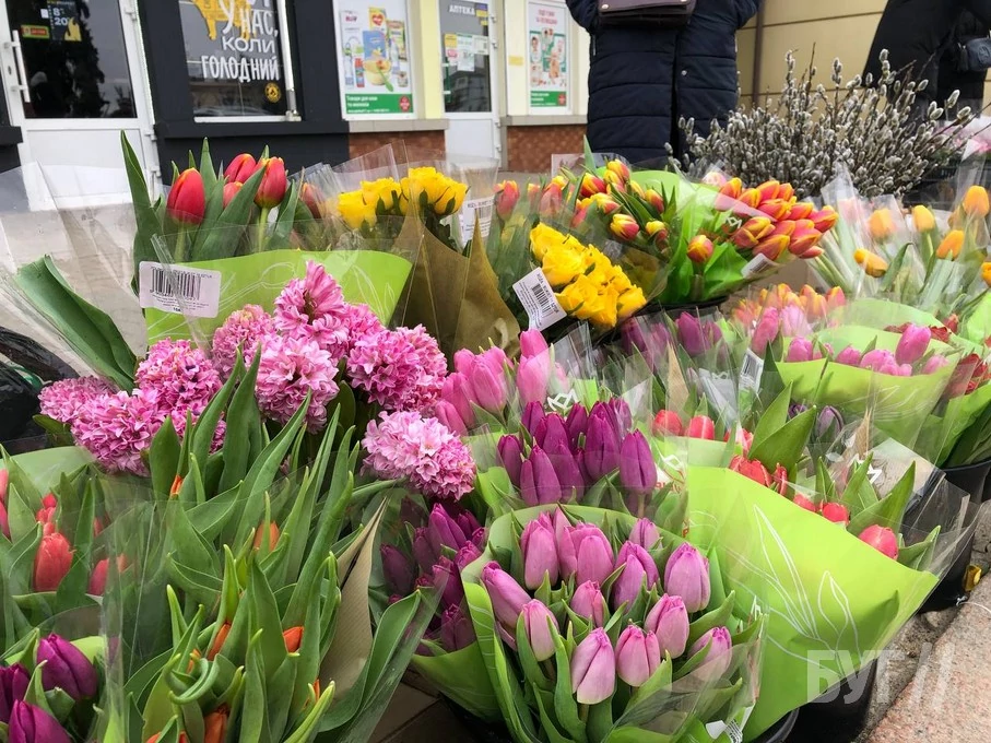 Традиційно 7-го березня біля площі Героїв у Володимирі містяни активно розкуповують квіти для своїх коханих, мам, бабусь, сестер та подруг. Різні сорти тюльпанів, гіацинти, рідше тронди та примули розбирають, як гарячі пиріжки. Отож різних відтінків рожеві, фіолетові, червоні, білі , оранжеві та двоколірні тюльпани