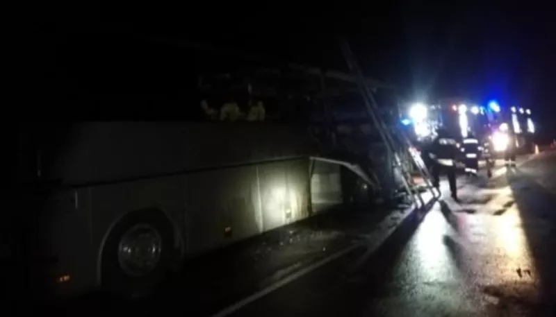 Ввечері 7-го вересня у Болгарії неподалік від Софії загорівся туристичний автобус, який прямував із турецькими туристами до Стамбула. Про це повідомляє канал БНТ1, - передає Укрінформ. Інцидент стався за 20 кілометрів від Софії, повідомлення про пожежу надійшло о 23.15. На місце прибули кілька пожежних розрахунків, ...