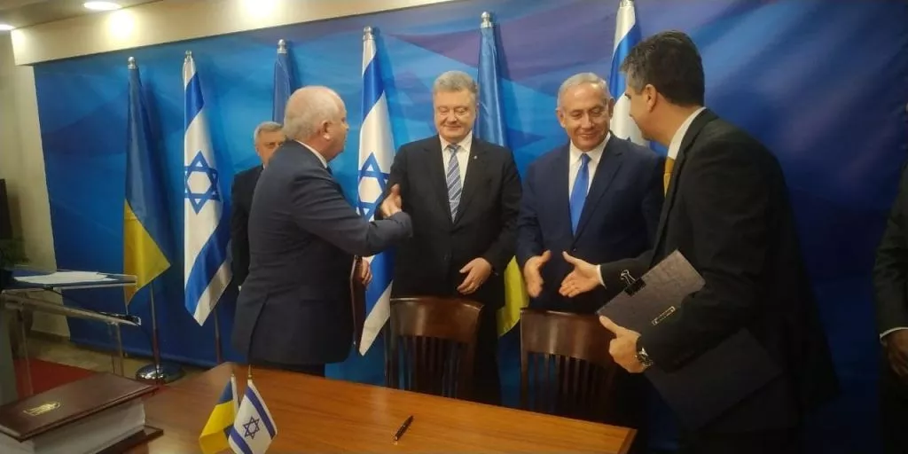 Україна та Ізраїль у понеділок, 21 січня, підписали Угоду про зону вільної торгівлі. На церемонії були присутні президент України Петро Порошенко та прем'єр-міністр Ізраїлю Беньямін Нетаньягу, повідомляє УНН. Перед церемонією Порошенко назвав цей день "історичним", адже, за його словами, угода про вільну торгівлю