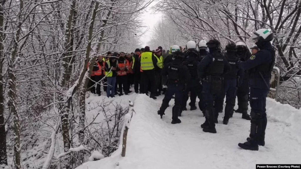 Близько двох сотень українських водіїв, які вже два тижні стоять поблизу пункту пропуску Корчова, оточила місцева поліція. Про це Радіо Свобода повідомив водій міжнародних перевезень Роман Власюк. За його словами, українські водії йшли, щоб поспілкуватися з польськими протестувальниками, але поліція їх зупинила. «Нас