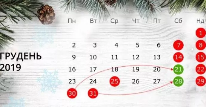 У першому місяці 2019 року українці матимуть 10 вихідних та 21 робочий день Зокрема, на Новий рік буде три вихідні – 30 і 31 грудня, 1 січня. При цьому робочий понеділок, 31 гpудня, переноситься на суботу, 29 грудня, повідомляють Факти. На Різдво українці також відпочиватимуть три дні – з 5 по 7 січня. Загалом у